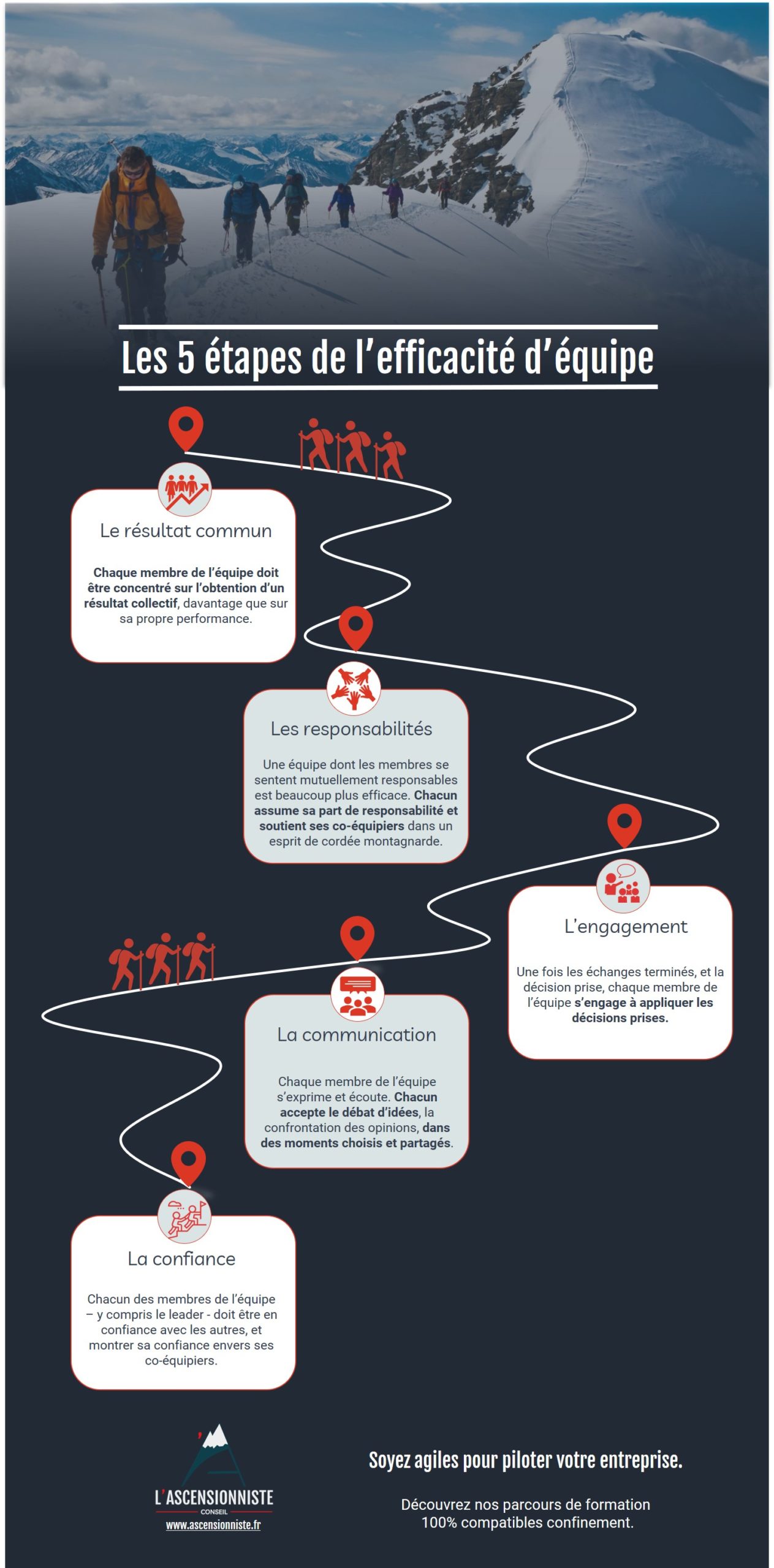 Au delà des processus, du matériel, des conditions indispensables au fonctionnement d’une équipe, il existe 5 piliers qui font qu’au sein d’une même organisation, certaines équipes sont plus efficaces que d’autres: